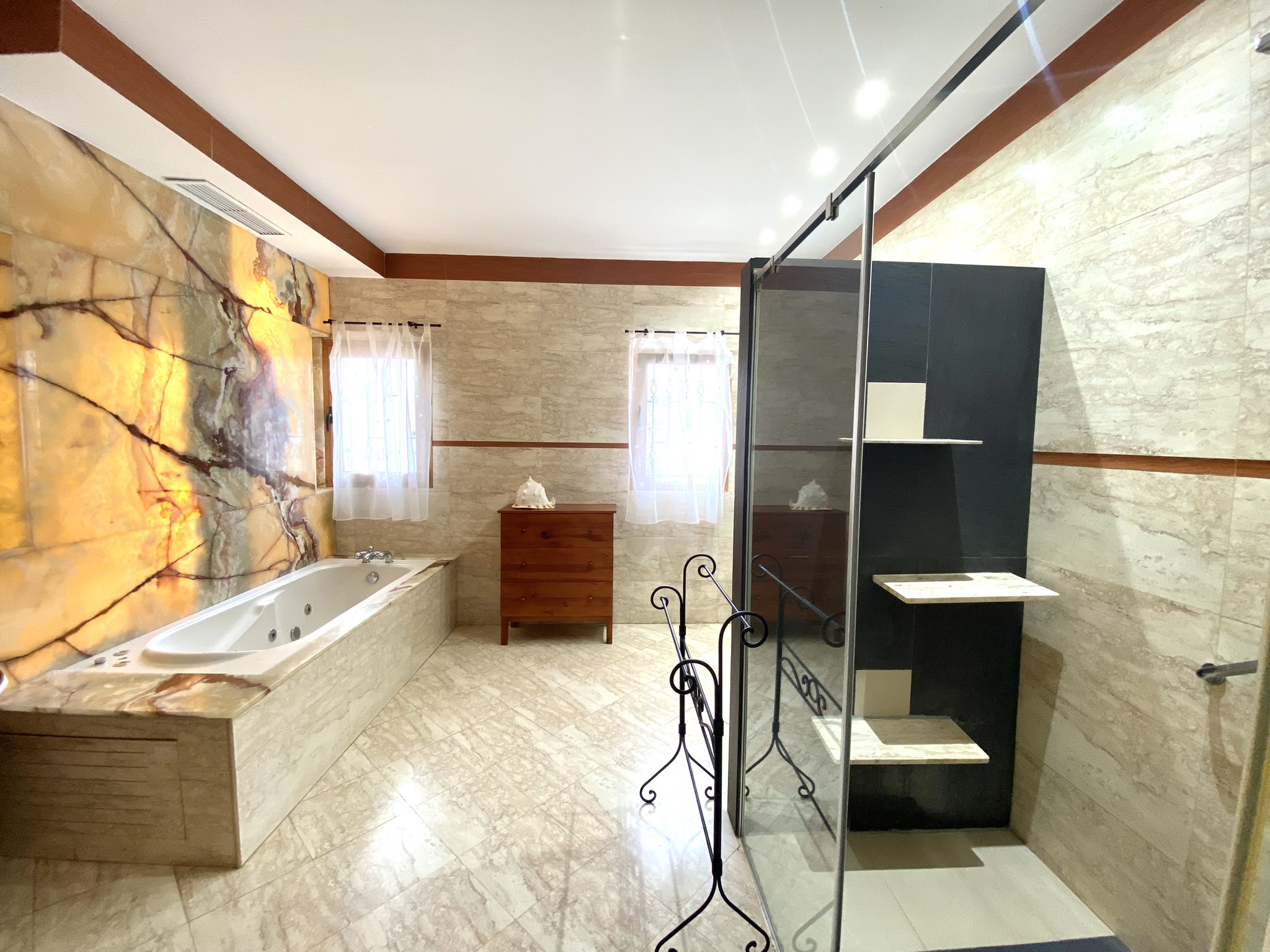Large private bathroom inside the master bedroom. Equipped with jacuzzi, shower, double sink, bidet and toilet.